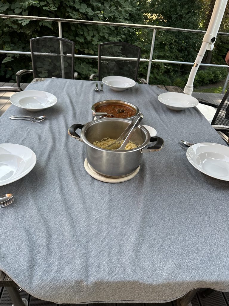 So, schnell Spaghetti-Bolo für die ganze Bande. Gegessen wird auf der Dachterrasse