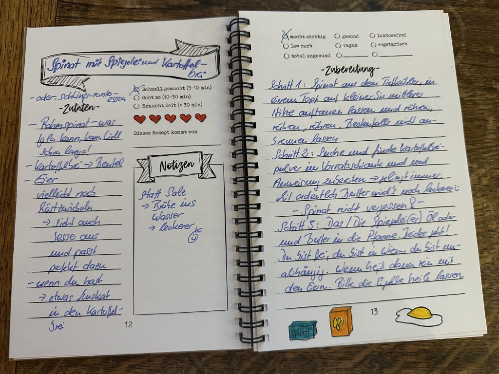 Während der Arbeit nutze ich die Zeit, um das Kochbuch für Lena weiter zu schreiben und mit Sketchnotes zu versehen.