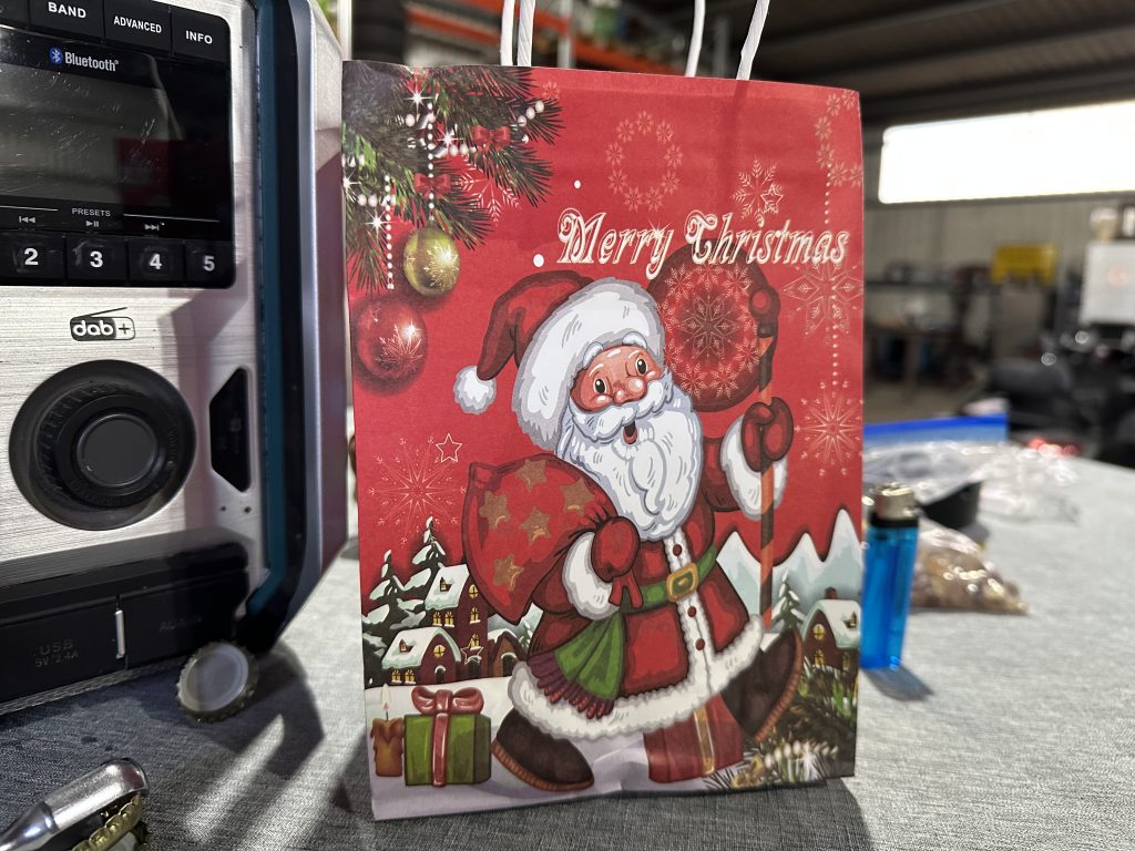 Im Dezember gilt: Auf jeden Meter ein Vertreter mit manchmal sinnvollen Geschenken – manchmal auch nicht. In dieser Tüte verbirgt sich garantiert kein Wein oder eine anständige Mettwurst. Eher ein kleiner Aufstellkalender, kleine Blöcke und zwei Kugelschreiber. Yeah!