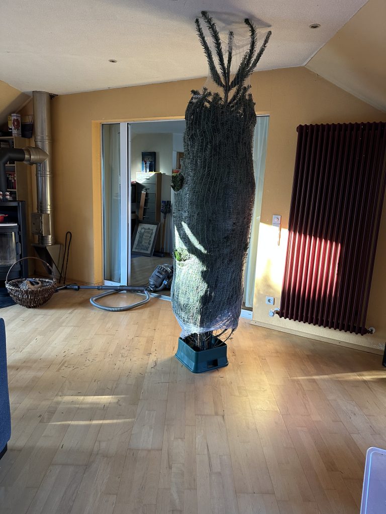 In der dritten Woche wurde es dann offiziell festlich, denn der Weihnachtsbaum zog ein und wurde geschmückt. Das Ergebnis war erstaunlich gerade, was jedes Jahr aufs Neue als Erfolg verbucht wird. Die Nacht darauf entschied Buddy allerdings gegen 4:30 Uhr morgens, dass Schlaf überschätzt wird und der Tag beginnen sollte. Der positive Nebeneffekt: Ich hatte plötzlich unfassbar viel Zeit, um sämtliche Küchenschränke auszuräumen, auszumisten, auszuwischen und anschließend wieder einzuräumen. Ein Traum. Wirklich.
