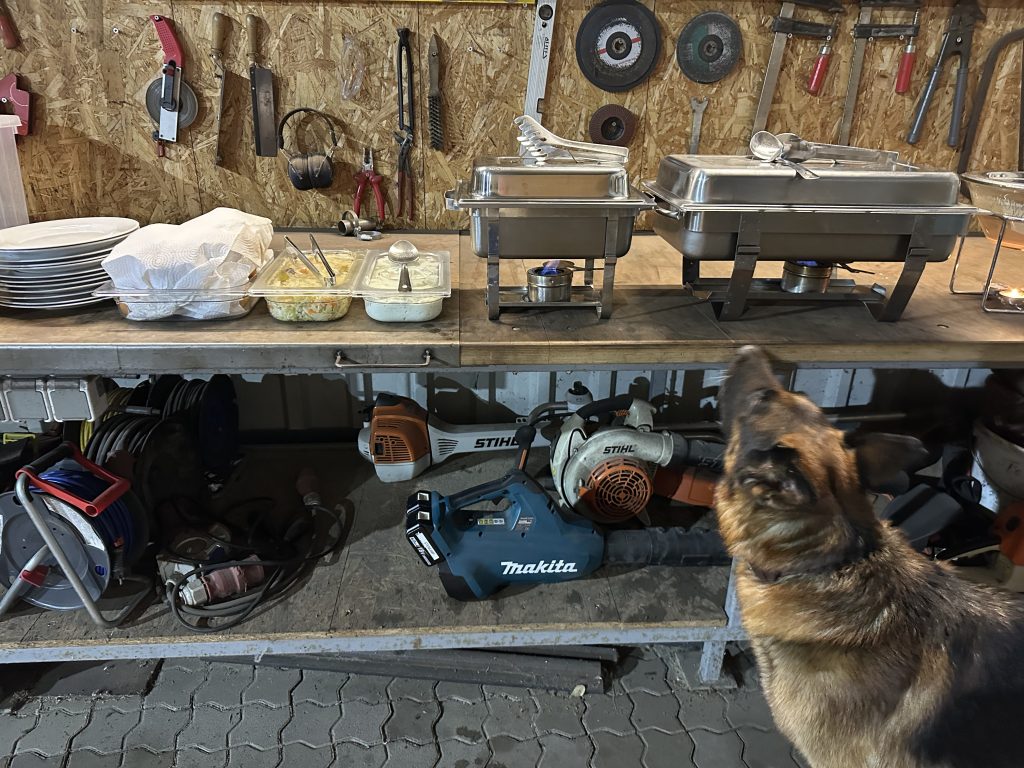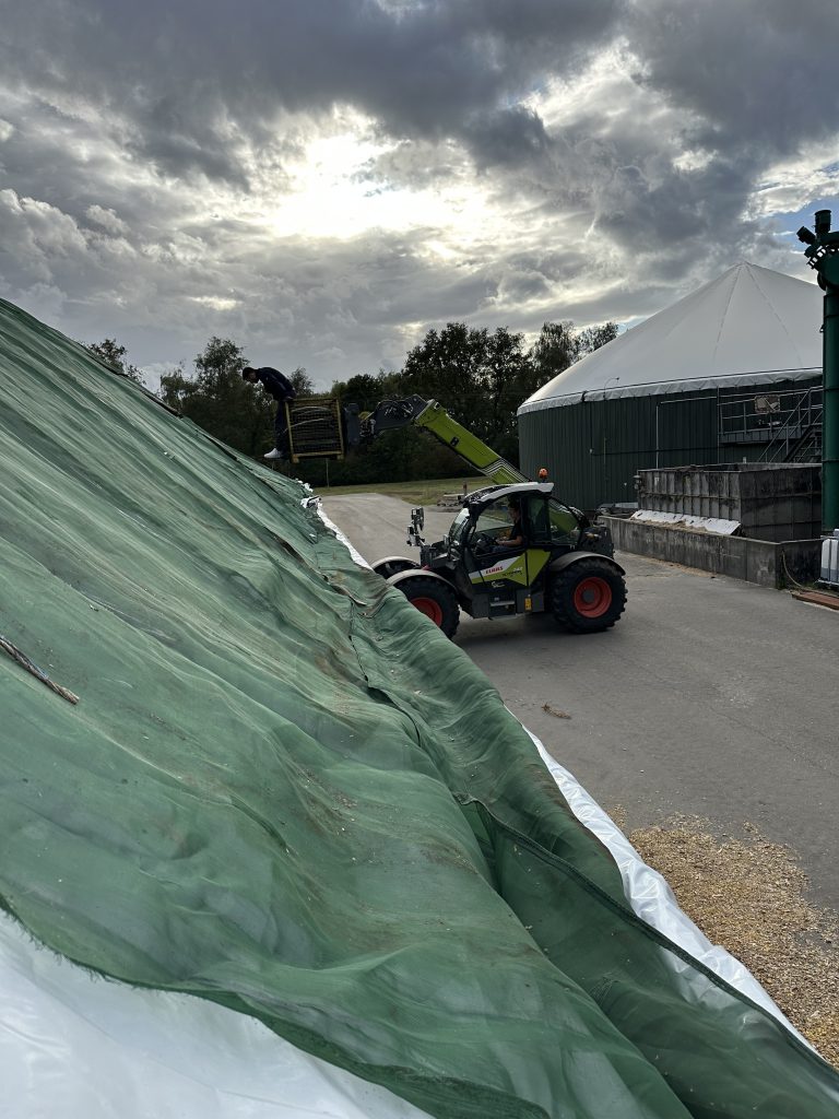 Dann wechselte das Setting: die fünfte Jahreszeit in der Landwirtschaft hat begonnen: Mais häckseln! Das bedeutet für mich: alles, was so hinter den Kulissen anfällt erledigen. Halle aufräumen, Theke putzen, Essen bestellen, auf die Schnelle noch Würstchen besorgen und so weiter. Irgendwas ist immer.